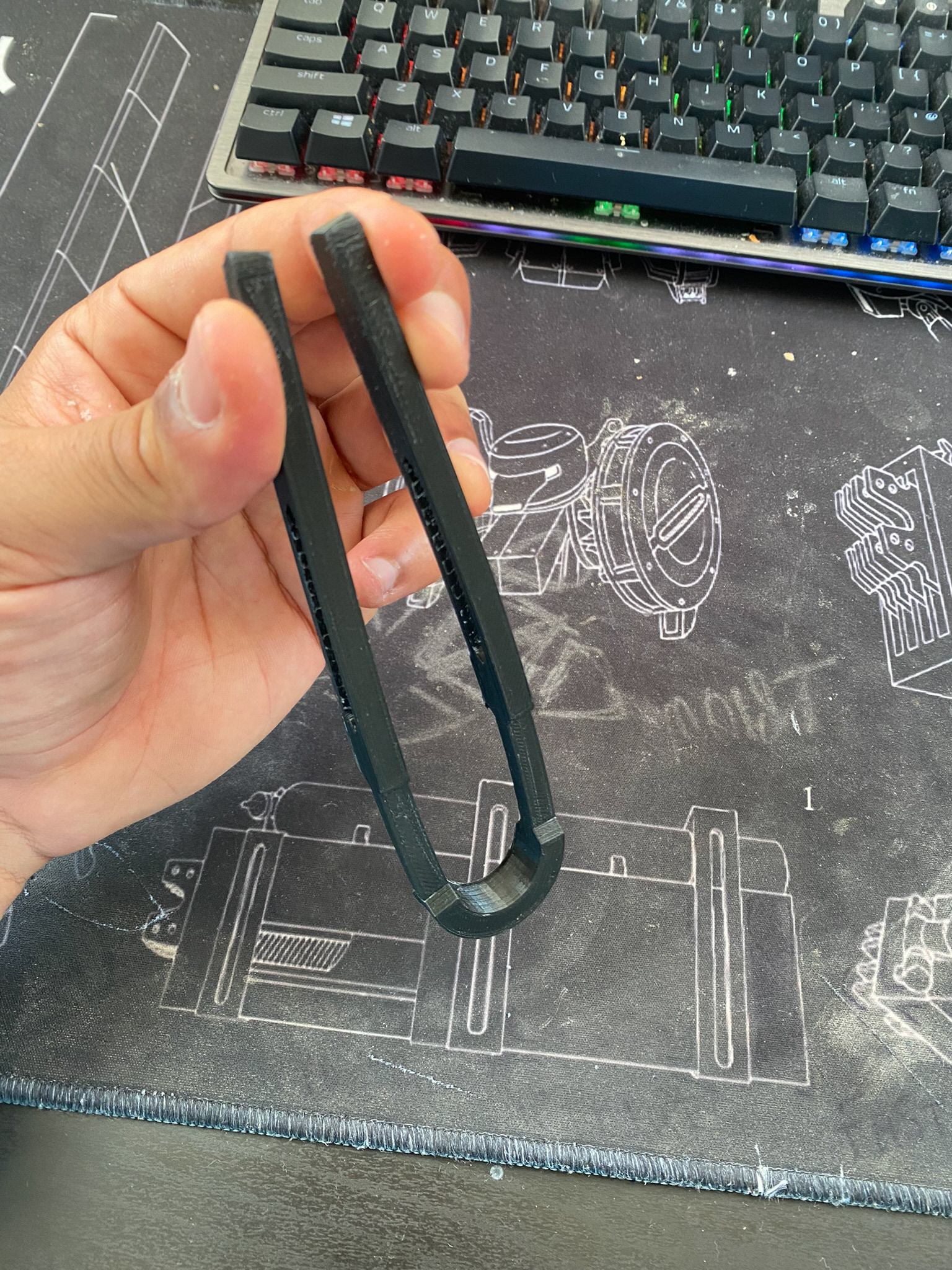 Rapidly prototyping some more quick concepts in a tong-style utilising simple spring and PLA. Here, I could test what feels the most comfortable to use and to press down upon.
