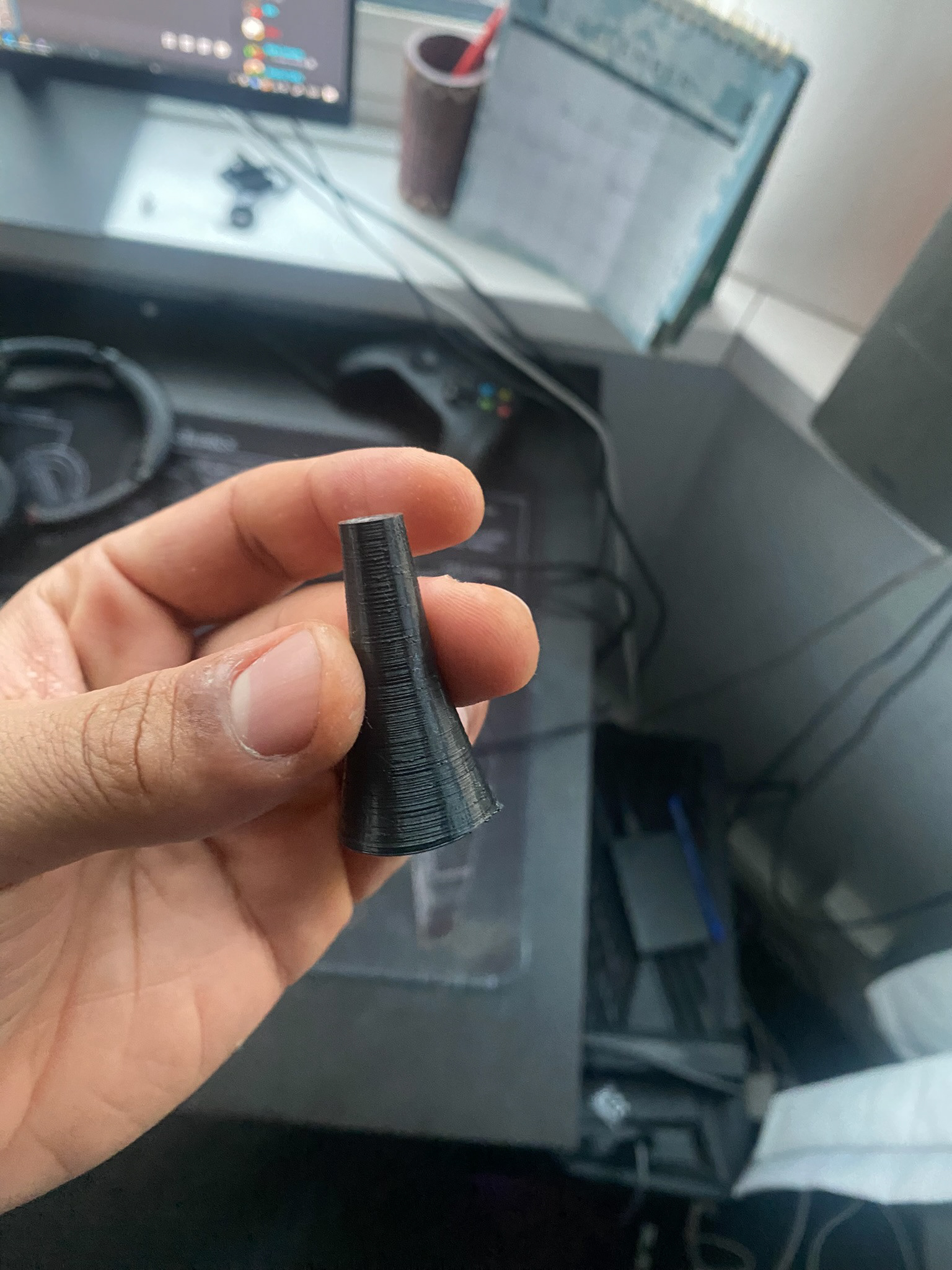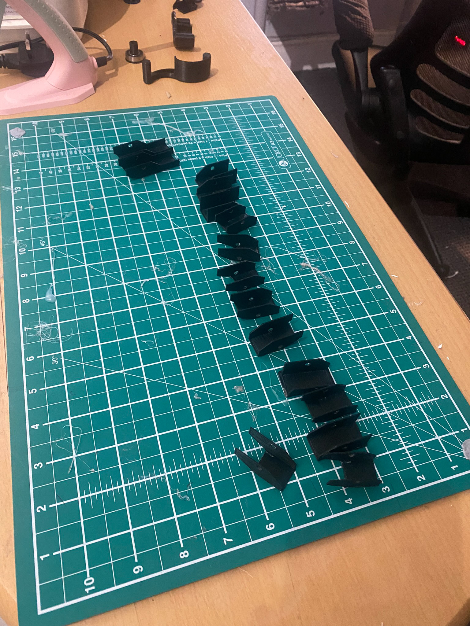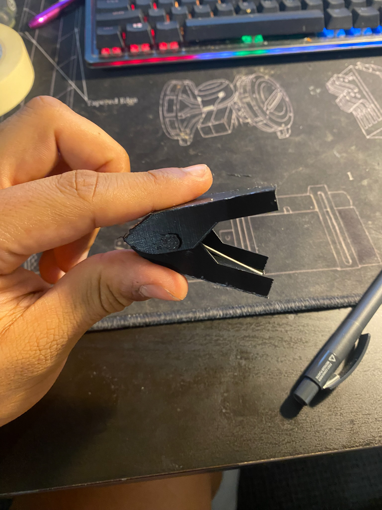 Earliest prototypes printed in PLA+ on a 3D printer. These helped with initial ideation and rapid prototyping, being able to see what works and doesn't work.