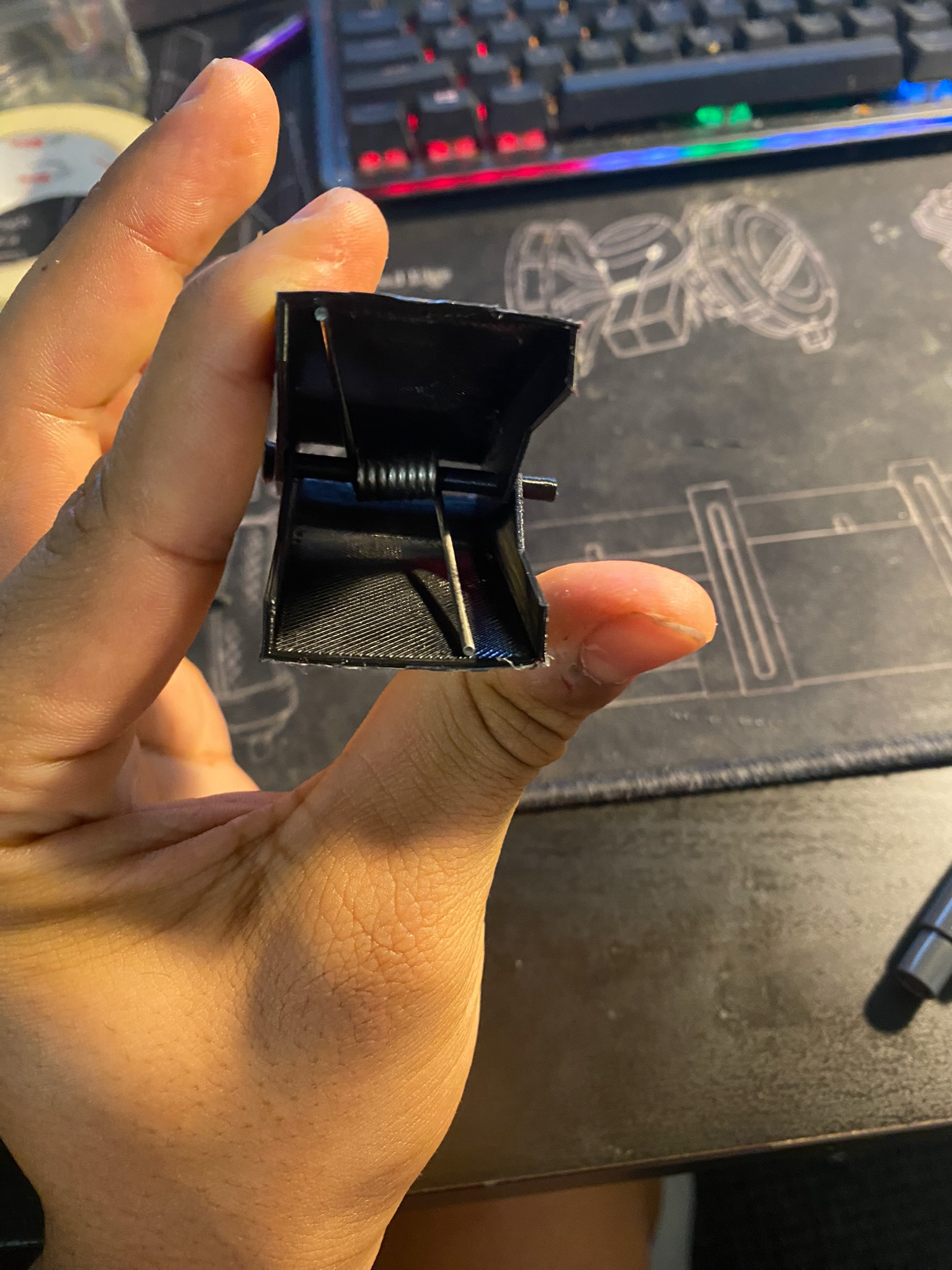 Initially, a torsion spring-style mechanism was to be used. But, thanks to rapid prototyping, I was quick to note the torsion springs available for my model could not accomodate the size I needed it to be.